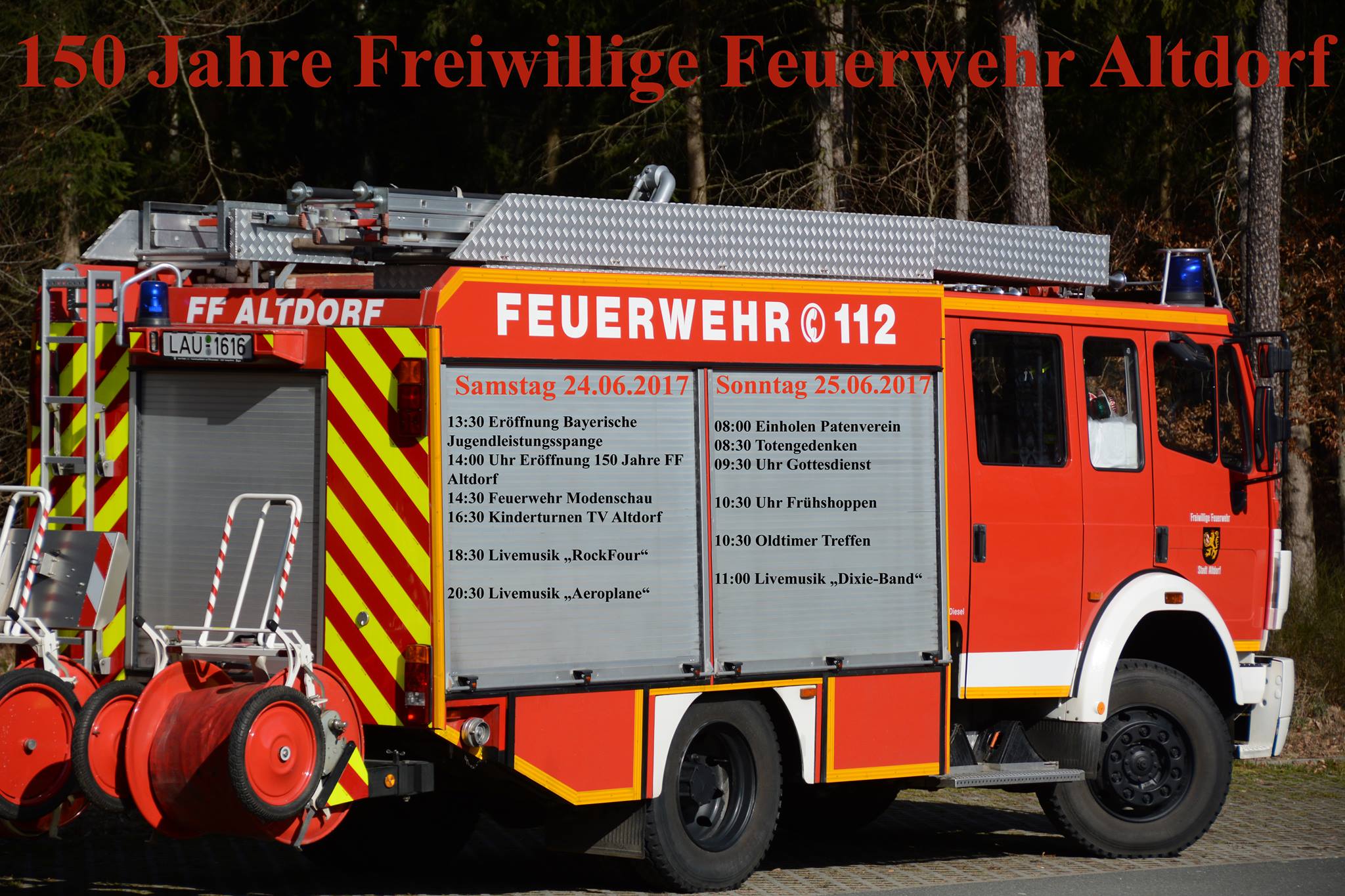 Dies wird gebührend gefeiert. Am 24.06.2017 und 25.06.2017 steht der Marktplatz in Altdorf unter dem Motto, 150 Jahre FF Altdorf.